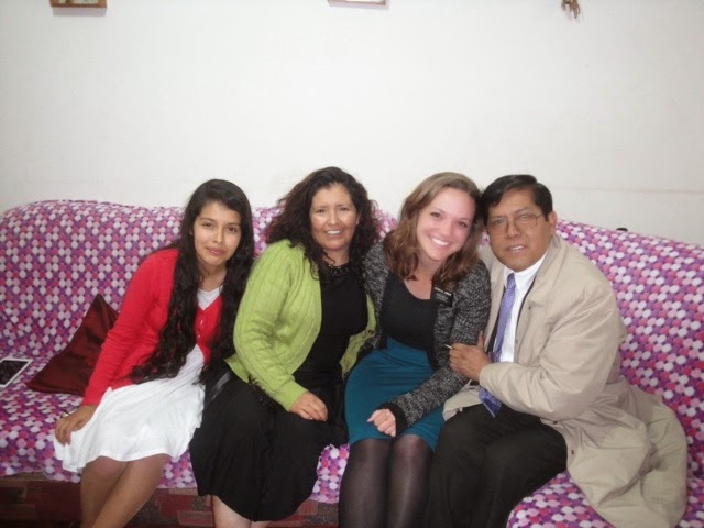 We were walking up one of the big hills here in Cusco trying to find a referal that we got the other day. There was a lady sitting there on our way up, and we started talking to her. About 30 seconds into the conversation she invited us to come up to her house to meet her family. We went happily. The whole way up she kept offering us basically everything that she owns. We get to her house and she starts feeding us and showing us her children´s birth certificates (8 of them, by the way...) and making sure that we are completely comfortable. Super sweet lady. We kept trying to teach her a little bit about who we are and why we´re here. It was hard to get any words in though because she kept singing in Qechua and asking us to teach her prayers in English. Didn´t quite get it. She then offered us a live cui to take home to cook. Then actually gave us cui to eat. I was excited at first becaue I really want to try it before I leave. When she gave us the head, fur, eyes, whiskers, everything still there, my ... animo?? (*I think the word she's looking for is 'enthusiasm') went down a little bit. Hna Hill almost died. It was an interesting visit. We´re going to try to go back another day, more prepared to handle everything and maybe actually teach something.